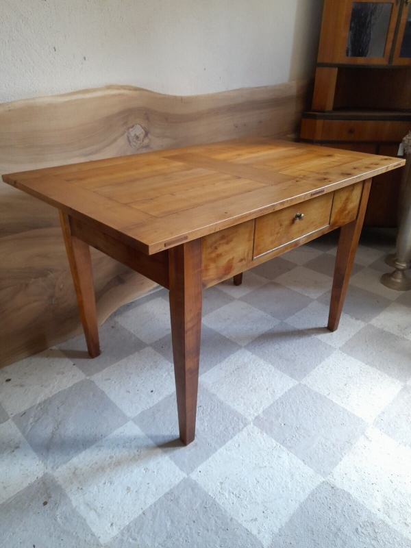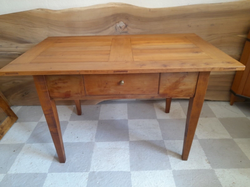 sehr schöner antiker Tisch von ca. 1820 aus massivem Kirschbaum, die Platte ist in Rahmenbauweise gefertigt und hat eine schöne Patina, am Tisch haben bequem 4 Personen Platz, die Maße: H80 B130 T80 Höhe bis Zarge 58 Die Versandkosten betragen 150,00 Euro. Die Lieferung erfolgt durch einen zuverlässigen Spediteur. Auf Wunsch wird das Möbelstück vor Ort auch aufgebaut.